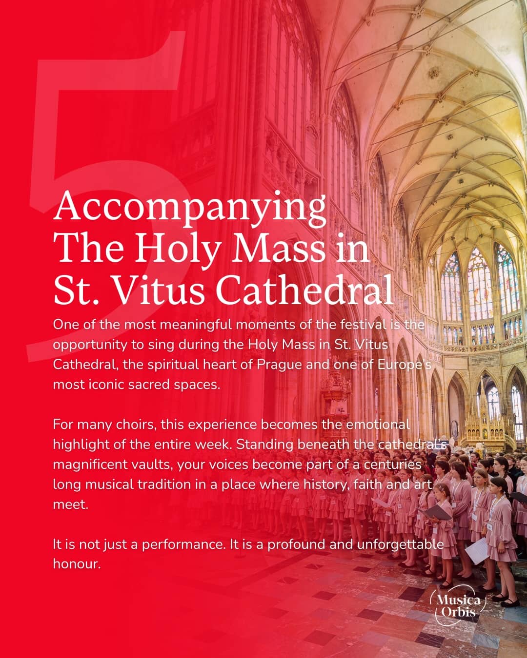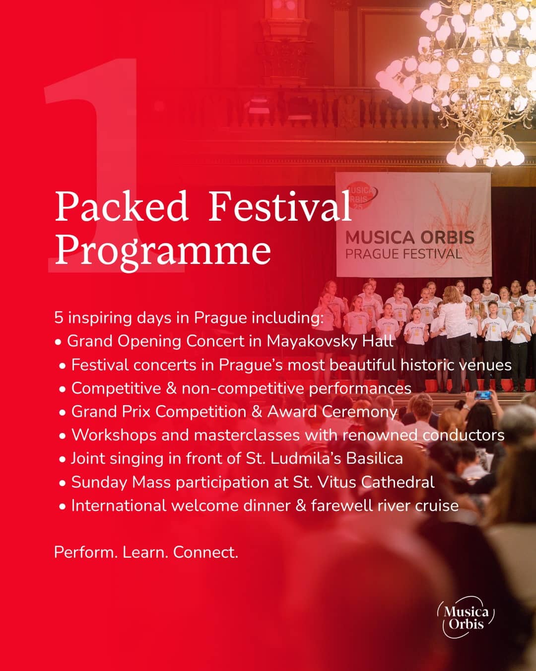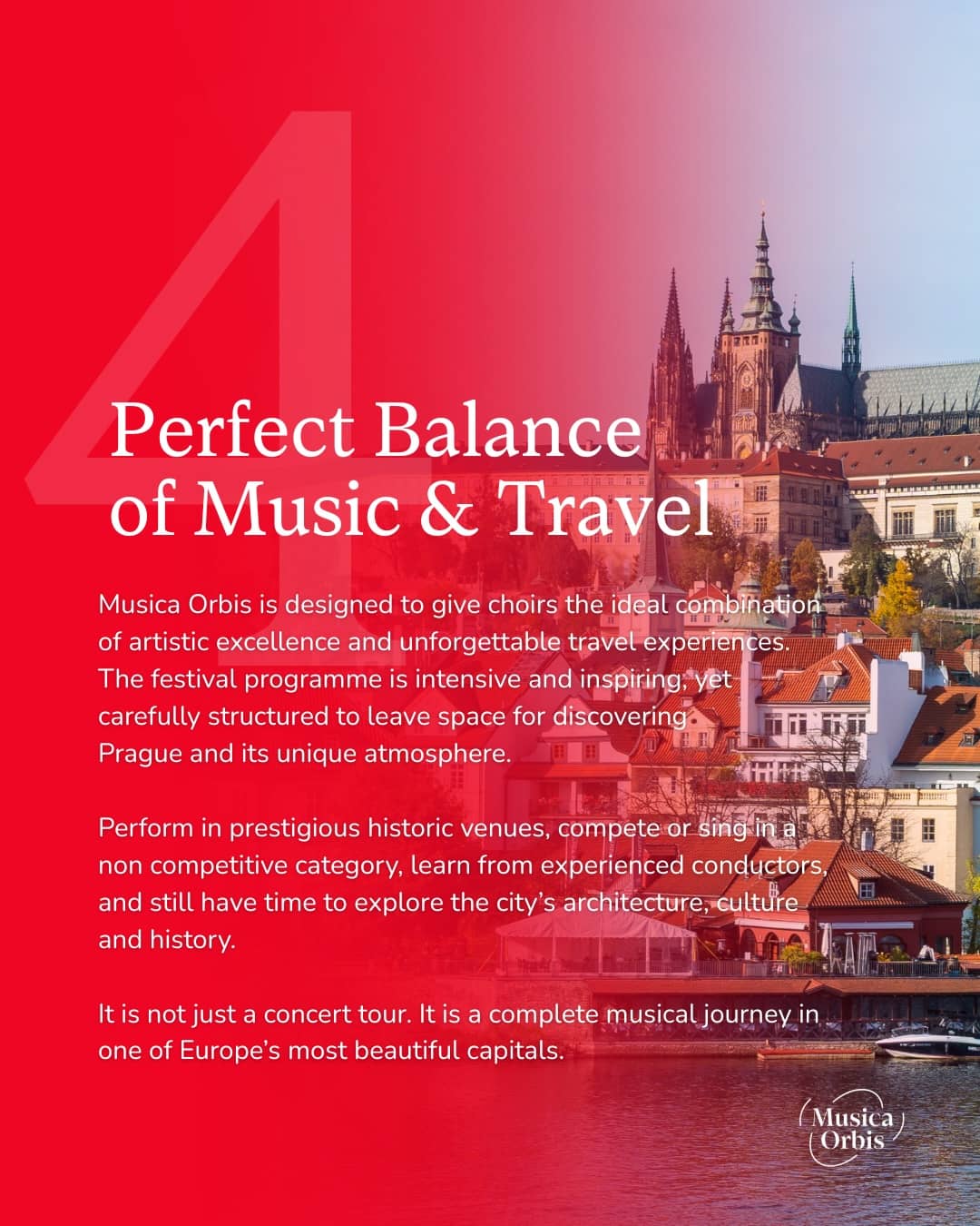 Twice a year, Musica Orbis Festivals organize international choir festivals and choral competitions in Prague, bringing amateur choirs and orchestras from around the world together for an unforgettable musical experience in the heart of Europe.